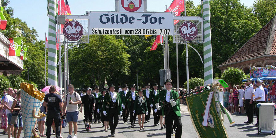 Seit mehreren Jahren fahren wir mit einer Abordnung nach Hannover zum größten Schützenumzug, so auch in diesem Jahr. Um 6:00 Uhr fuhr der Bus am Vereinshaus los, auf dem Weg nach Hannover wurde ein Frühstücksstopp bei der Abfahrt Schwarmstedt eingelegt, um gestärkt für den Schützenausmarsch in Hannover zu sein. In Hannover angekommen, sind wir dann zum Sammelplatz gegangen und haben bei kühlen Getränken auf den Beginn des Schützenumzuges gewartet. In diesem Jahr waren wir der 45. Verein im, 2. Zug. Um 10:00 Uhr war es schon so warm, dass sich alle Teilnehmer einen schattigen Platz suchten. Pünktlich um 10:45 Uhr startete der Schützenausmarsch und gut 30 Minuten später ging es auch für uns zu dem 3,5 km langen Marsch durch die Innenstadt los. Nach gut 1 ¾ Stunden waren wir bei ca. 37°C (im Schatten) am Schützenplatz angekommen.