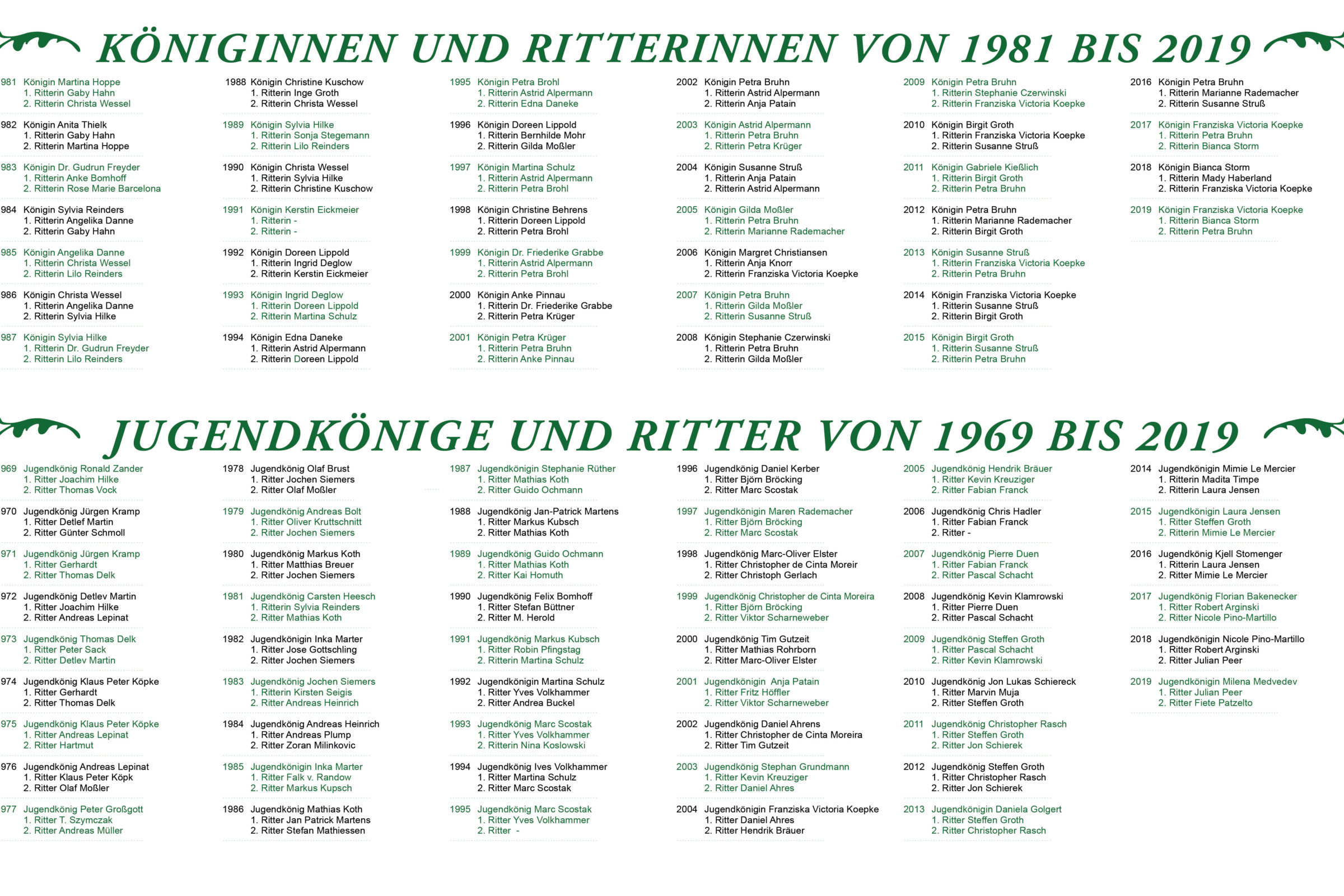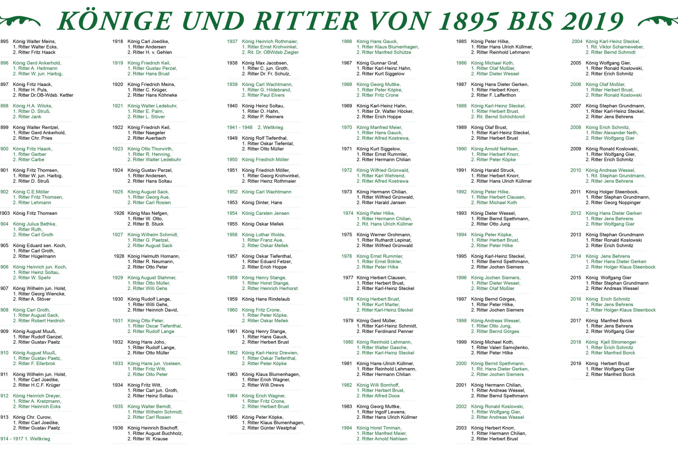 Die gesamte Übersicht der Könige der Wandsbeker Schützengilde von 1895 bis heute.